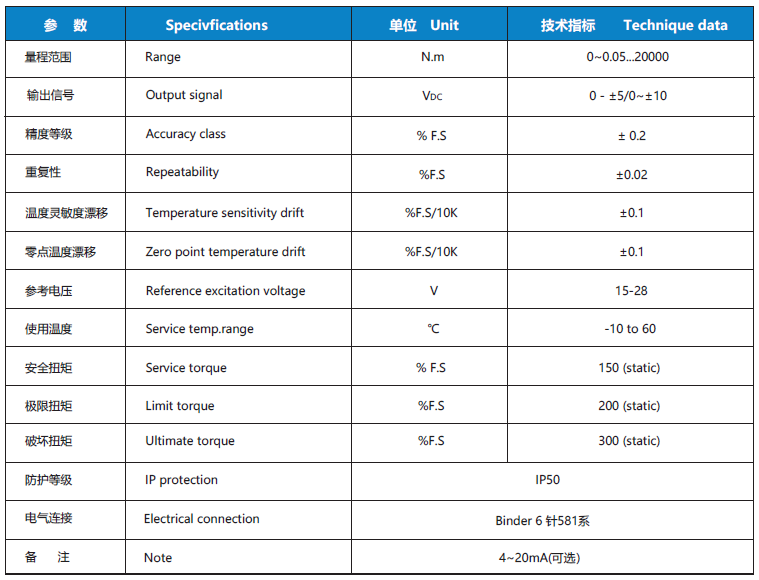 輸出:1mv/V、0~±5/10V、4~20mA可選