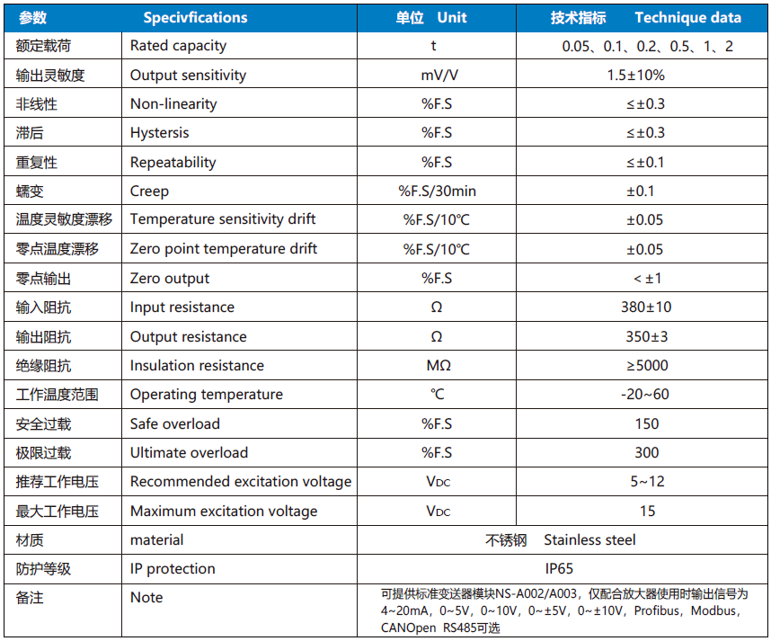 NS-WL2系列傳感器采用柱型剪切結(jié)構(gòu);