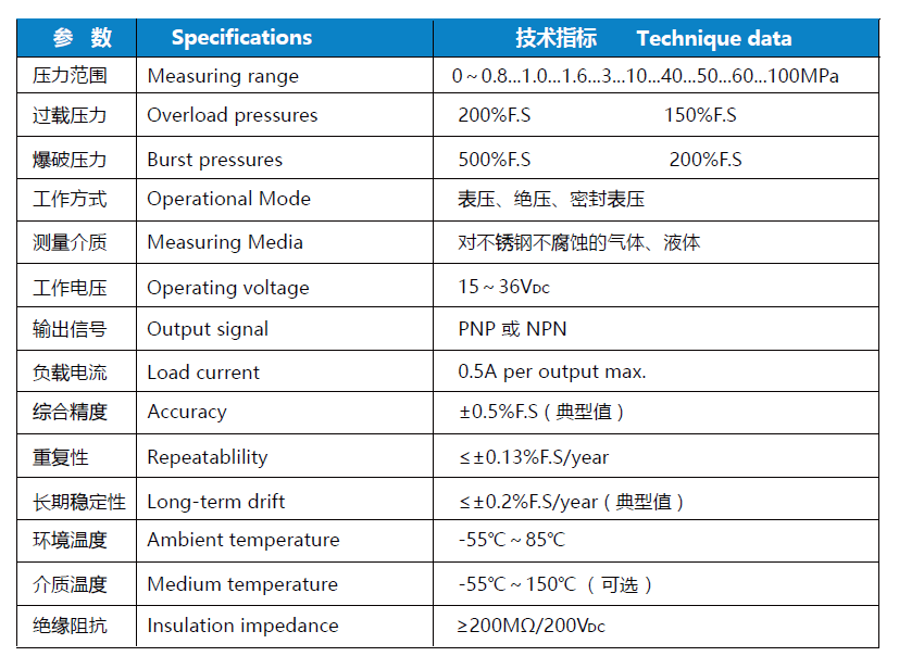 溫差極小,零點溫度補償≤ ± 0.008 % F.S/℃ typ.