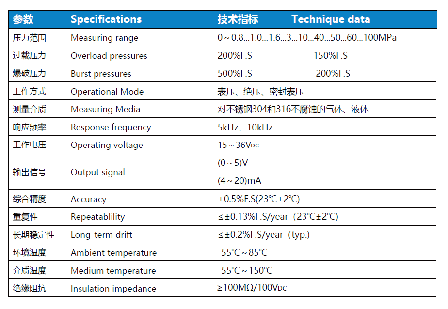 溫差極小,零點溫度補償≤ ± 0.008 % F.S/℃ typ.